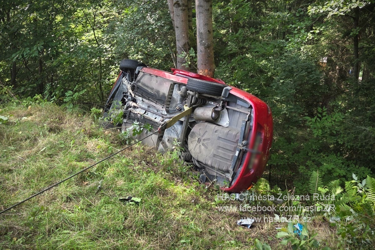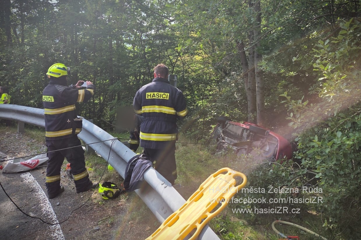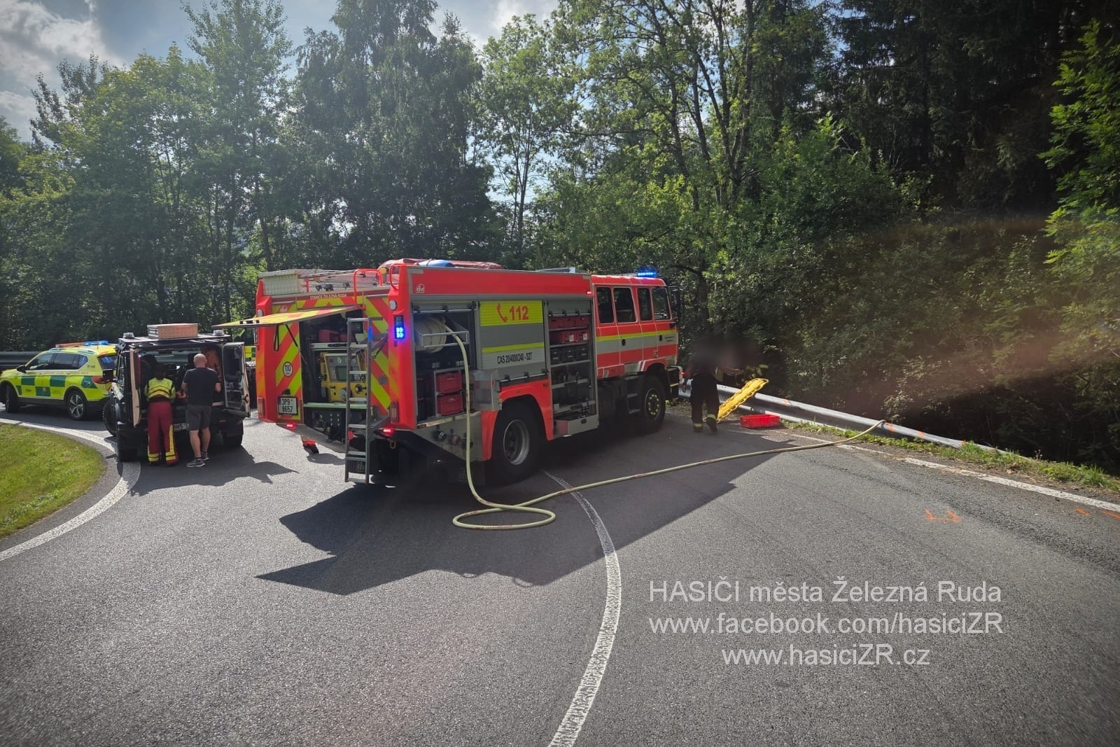 K dopravní nehodě osobního automobilu se zaklíněnou osobou jsme vyjeli společně se stanicí HZS Železná Ruda na silnici č.27 pod Javornou.